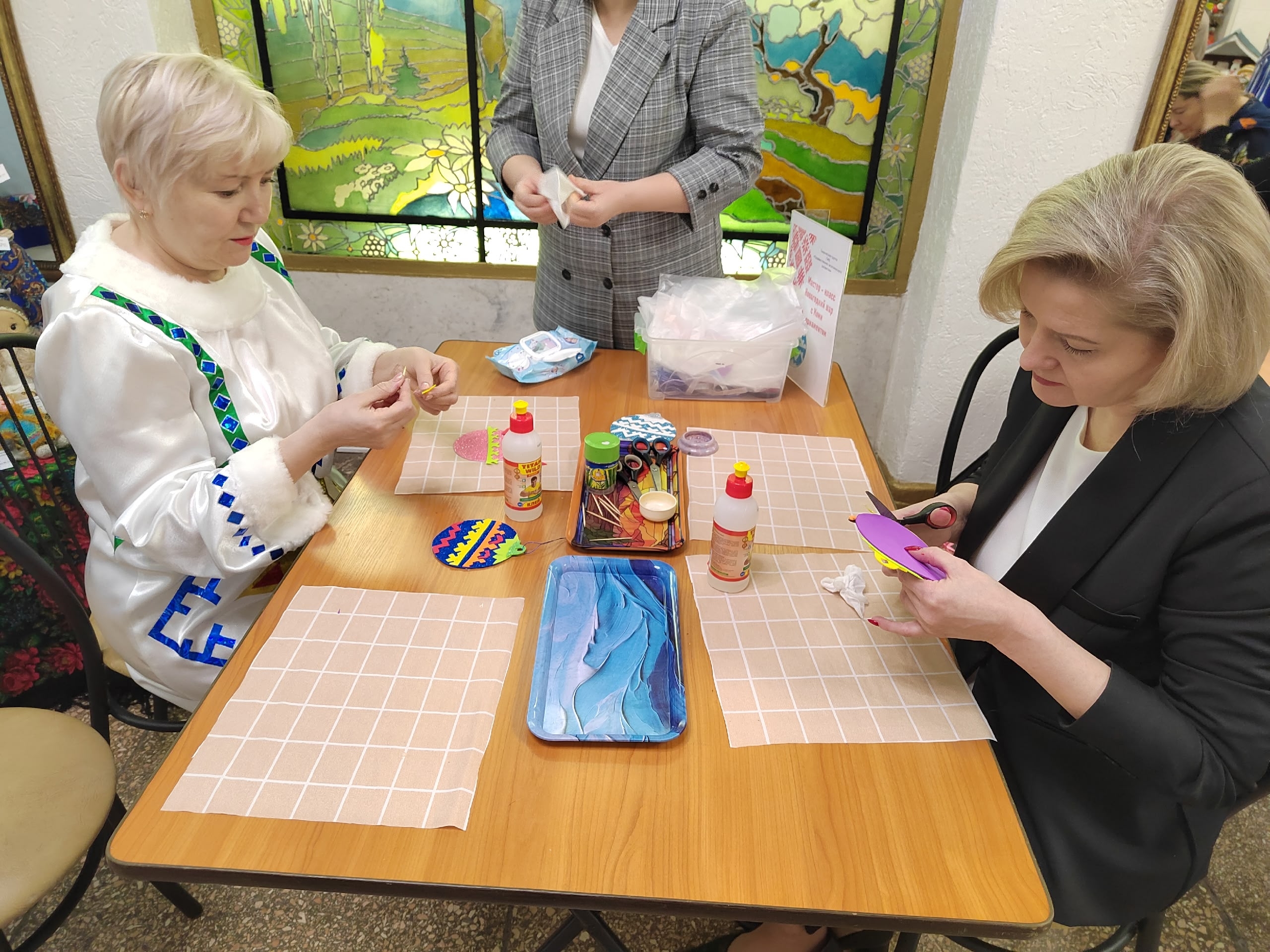 В рамках конференции "Коми Войтер" руководителем и участником ГМО (Ященко Е.М., Глебовой Н.В.) проведен мастер-класс на новогоднюю тематику с Коми орнаментом.